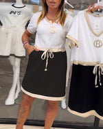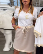 V-Neck Drawstring Casual Short-Sleeved Dress