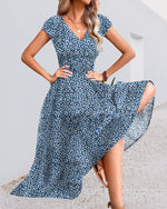 SPECIFICATIONS Style: Elegant Material: Cotton Blends Dress Type: A-Line Dress Length: Maxi Neckline: V neck_V Pattern Type: Leaves Sleeve Type: Puff Sleeve Sleeve Length: Short Sleeve Details: Shirred Fit Type: Regular Season: Spring, Summer Occasion: Daily, Vacation Package Includes: 1 x Dress SIZE TABLE Size US Bust Lengt...