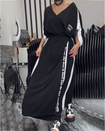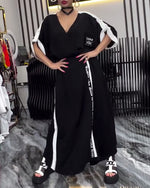 SPECIFICATIONS Style: Casual Material: Cotton Blends Dress Type: Shirt Dress Length: Maxi Neckline: V neck_V Pattern Type: Striped Sleeve Type: Dropped shoulder Sleeve Length: Short Sleeve Details: Slit Fit Type: Loose Season: Spring, Summer, Fall Occasion: Daily Package Includes: 1 x Dress SIZE TABLE (cm) Size Bust Length c...