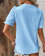 SPECIFICATIONS Top Type: Tops Style: Casual Material: 100% Cotton Occasion: Daily Neckline: Round Neck Pattern Type: Solid Color Sleeve Type: Raglan sleeve Sleeve Length: 3/4 Sleeve Fit Type: Loose Season: Spring, Summer, Fall Details: Hollow Out, Lace Package Includes: 1 x Top SIZE TABLE (cm) Size Bust Length Sleeve Length...