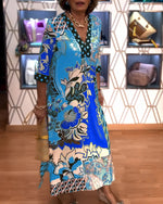 SPECIFICATIONS Style: Casual Material: 5% Spandex, 95% Polyester Dress Type: A-Line Dress Length: Knee Length Neckline: V neck_V Pattern Type: Print Sleeve Type: Flare Sleeve Sleeve Length: 3/4 Sleeve Fit Type: Regular Season: Spring, Summer Occasion: Daily Package Includes: 1 x Dress SIZE TABLE Size Bust Length Sleeve le...