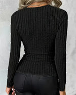 SPECIFICATIONS Top Type: Tops Style: Chic, Sexy Material: 35% Spandex, 65% Polyester Occasion: Daily Neckline: V neck_V Pattern Type: Solid Color Sleeve Type: Regular sleeve Sleeve Length: Long Sleeve Fit Type: Regular Season: Spring, Fall Details: Patchwork, Buttons, Hollow Out Package Includes: 1 x Tops SIZE TABLE Size ...