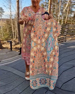 SPECIFICATIONS Style: Vacation, Elegant Material: Spandex, Polyester Dress Type: A-Line Dress Length: Maxi Neckline: V neck_V Pattern Type: Paisley Sleeve Type: Lantern Sleeve Sleeve Length: Long Sleeve Details: Shirred Fit Type: Regular Season: Spring, Summer, Fall Occasion: Daily, Vacation Package Includes: 1 x Dress SIZE TABLE ...