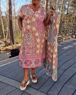 SPECIFICATIONS Style: Casual Material: Cotton Blends Dress Type: Shift dress Dress Length: Midi Neckline: V neck_V Pattern Type: Print Sleeve Type: Regular sleeve Sleeve Length: Long Sleeve Details: Pocket, Slit Fit Type: Loose Season: Spring, Summer, Fall Occasion: Daily Package Includes: 1 x Dress SIZE TABLE (cm) Size Bust...