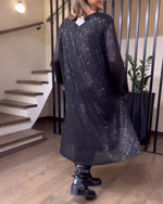 SPECIFICATIONS Style: Elegant, Business Material: 95% polyester, 5% spandex Dress Type: Shift dress Dress Length: Knee Length Neckline: Round Neck Pattern Type: Solid Color Sleeve Type: Regular sleeve Sleeve Length: Long Sleeve Details: Patchwork, See-through Fit Type: Regular Season: Spring, Fall, Winter Occasion: Daily, Work Package Include...