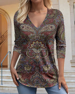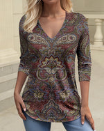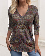 SPECIFICATIONS Top Type: Blouses Style: Casual Material: 95% Polyester, 5% Spandex Occasion: Daily, Work Neckline: V neck_V Pattern Type: Geometric Print Sleeve Type: Regular sleeve Sleeve Length: Long Sleeve Fit Type: Loose Season: Spring, Fall, Winter Package Includes: 1 x Blouse SIZE TABLE Size Length Shoulder Bust Sleeves C...
