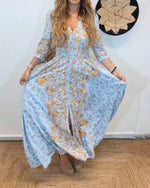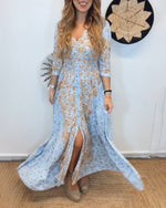 SPECIFICATIONS Style: Vacation, Elegant Material: Spandex, Polyester Dress Type: A-Line Dress Length: Maxi Neckline: V neck_V Pattern Type: Paisley Sleeve Type: Lantern Sleeve Sleeve Length: Long Sleeve Details: Shirred Fit Type: Regular Season: Spring, Summer, Fall Occasion: Daily, Vacation Package Includes: 1 x Dress SIZE TABLE ...