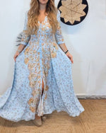 SPECIFICATIONS Style: Casual Material: Cotton Blends Dress Type: Shift dress Dress Length: Midi Neckline: V neck_V Pattern Type: Print Sleeve Type: Regular sleeve Sleeve Length: Long Sleeve Details: Pocket, Slit Fit Type: Loose Season: Spring, Summer, Fall Occasion: Daily Package Includes: 1 x Dress SIZE TABLE (cm) Size Bust...