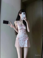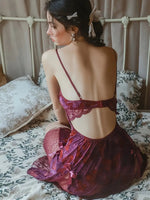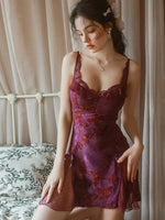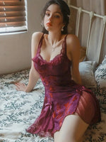 Women's Slim Fit Low V Lace-Up Butterfly Print Camisole Nightgown with Bralette and Backless Loungewear Set