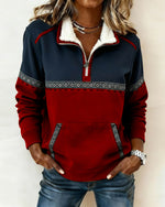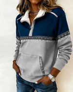 Patchwork Long-Sleeved Pocket Sweatshirt
