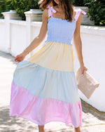 FEATURES Light and Flowy: Crafted from lightweight fabric, this dress offers a breezy and ethereal feel, perfect for staying cool and comfortable. Ruched Detailing: Elegant ruching adds texture and charm, enhancing the overall aesthetic and providing a flattering fit. Waist-Cinching Design: The cinched waist accentuates your figure, creating...